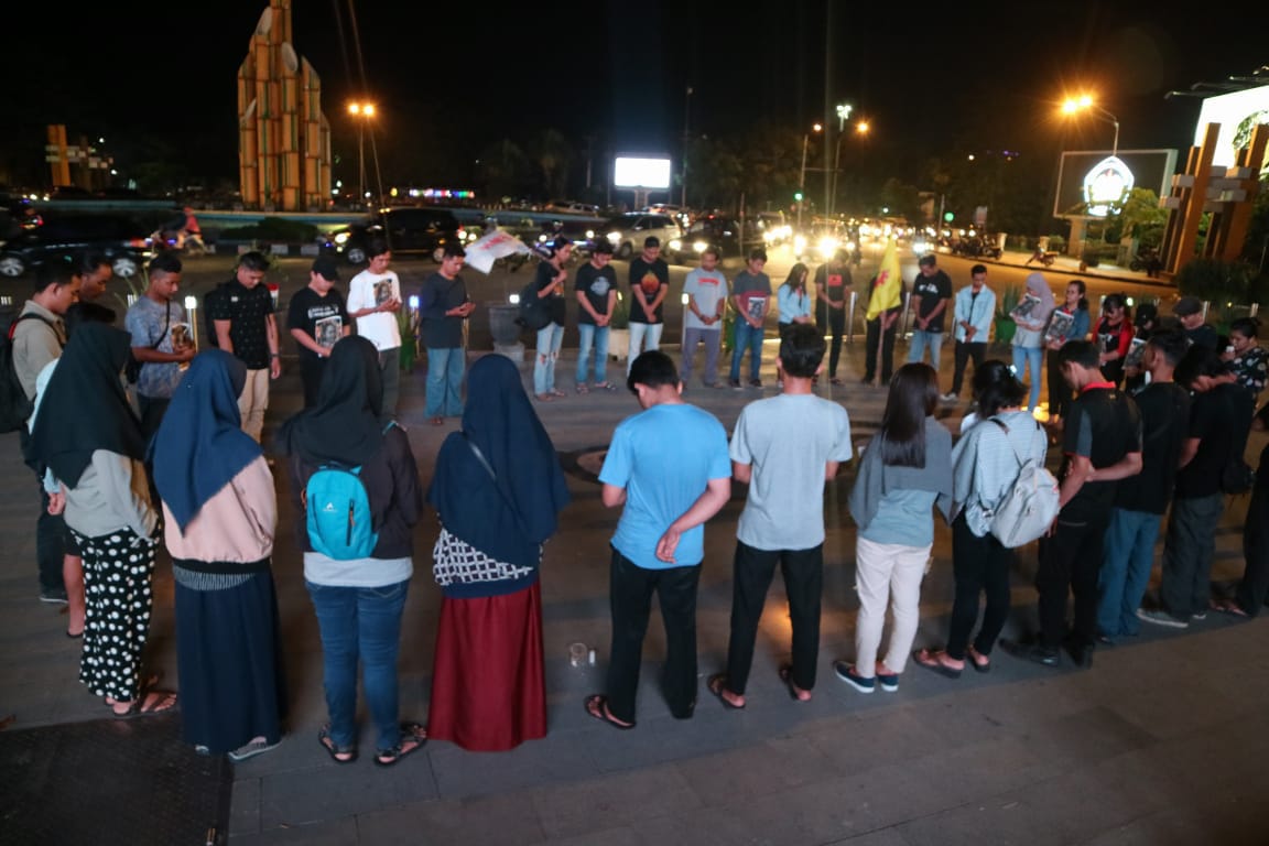 Massa gelar Doa bersama di bundaran Tugu Digulist Untan Pontianak, Jumat (2/11) Malam, sebagai bentuk duka atas hukuman pancung Tuti Tursilawati, TKW di Arab Saudi. Foto Fajar Bahari
