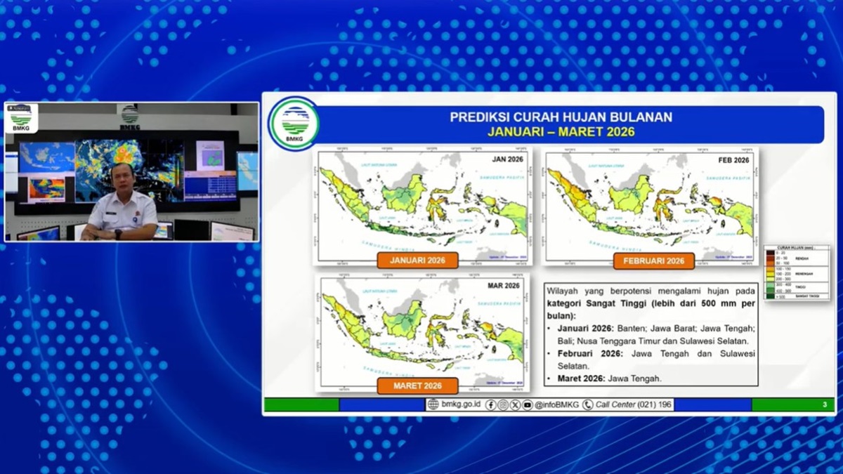 Kepala BMKG Teuku Faisal Fathani mengungkapkan, musim hujan di Indonesia diperkirakan masih akan berlangsung hingga Maret 2026, dengan puncaknya pada Januari. Hal itu disampaikan dalam Rapat Koordinasi Apel Kesiapsiagaan Bencana Hidrometeorologi Basah yang digelar secara daring.