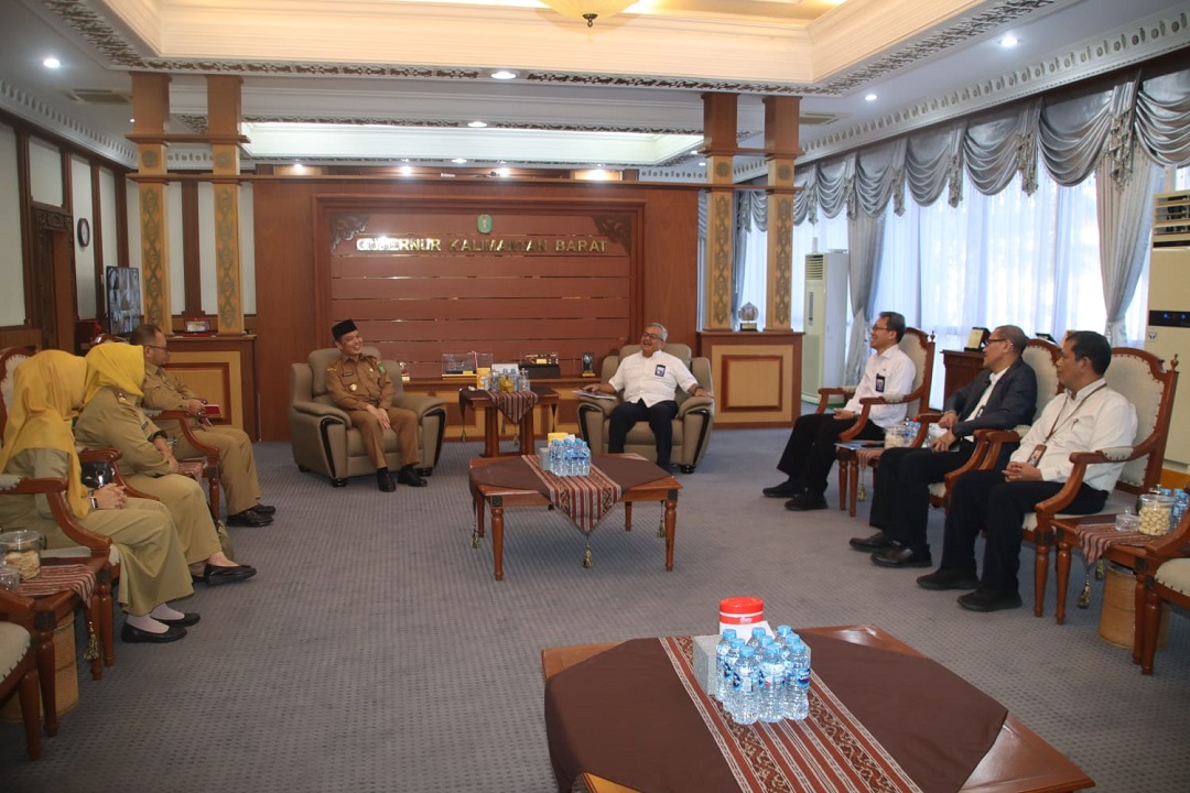 KalbarOke.Com – Gubernur Kalimantan Barat, Ria Norsan, menerima kunjungan kerja dari Kepala Perwakilan Badan Pengawasan Keuangan dan Pembangunan (BPKP) Provinsi Kalbar, Rudy M. Harahap, beserta jajaran di Ruang Kerja Gubernur pada Selasa, 7 Oktober 2025.