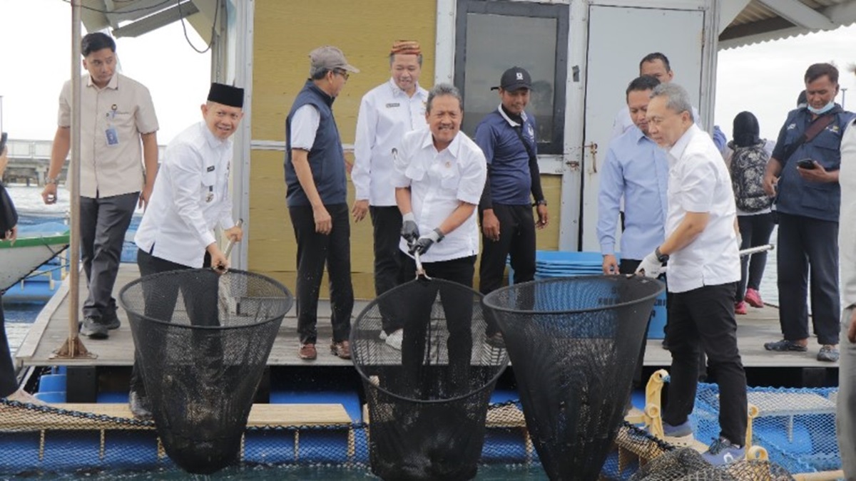 Menteri Kelautan dan Perikanan Sakti Wahyu Trenggono bersama Menteri Koordinator Bidang Perekonomian Zulkifli Hasan turut menghadiri panen ikan kerapu cantang yang digelar Baznas di Pulau Tidung, Kepulauan Seribu, pada akhir Oktober lalu.