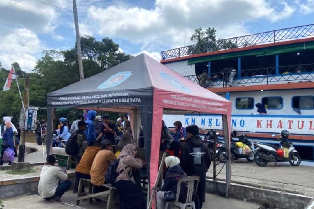 Kepadatan penumpang terlihat jelas di Dermaga Rasau Jaya sejak pagi hari. Salah satu moda transportasi andalan, yakni kapal Melano Khatulistiwa dengan rute Rasau Jaya–Teluk Batang, dipadati warga yang hendak pulang kampung.