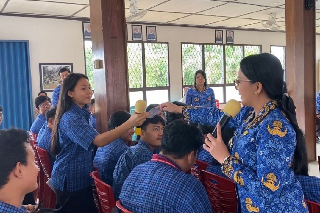 Siswa-siswi SMA Maniamas Ngabang menunjukkan antusiasme tinggi selama sesi sosialisasi. Mereka tampak aktif mengajukan dan menjawab pertanyaan yang diberikan oleh para narasumber, bahkan Bupati Karolin memberikan hadiah sebagai apresiasi atas keaktifan siswa.