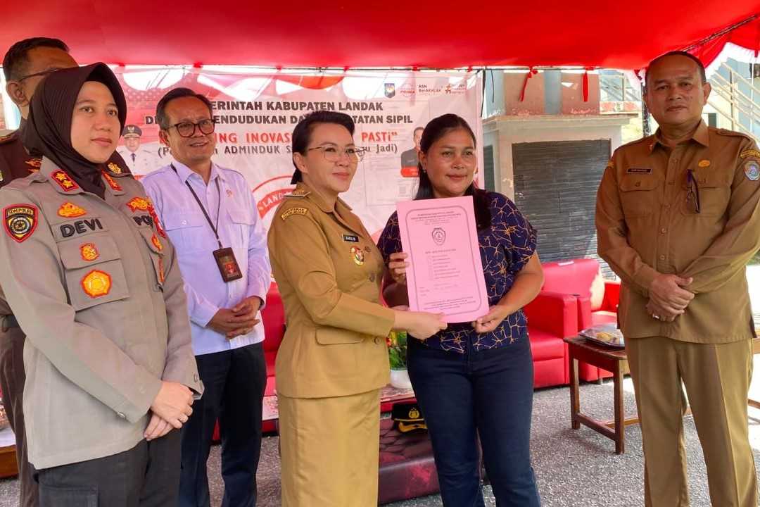 Bupati Landak Karolin Margret Natasa meluncurkan program "Landak Pasti". Inovasi ini menjamin dokumen kependudukan selesai maksimal dalam satu jam. (Foto: Hendri)