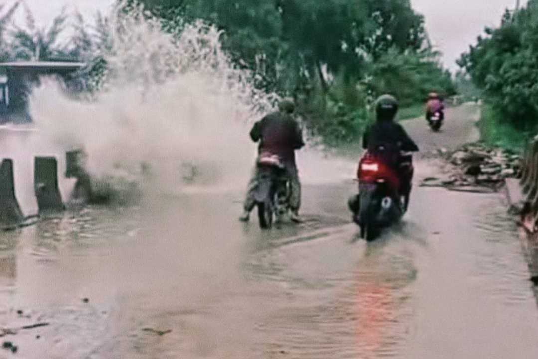 Dalam tinjauan tersebut, Bupati Satono menyaksikan langsung dampak dari pengikisan pantai oleh terjangan gelombang laut. Garis pantai yang terus menyusut kini mulai menjangkau berbagai fasilitas umum. Titik yang paling mengkhawatirkan adalah sebuah jembatan penghubung yang fondasinya sudah terkikis parah dan dalam posisi hampir roboh.