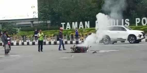 Abdul langsung bergegas berlari menuju lokasi kejadian. Dia melihat warga dan pemilik kendaraan sedang sedang sibuk memadamkan api. Kejadian inipun sempat menarik perhatian warga yang melintas. Abdul pun mengatur arus lalu lintas di sekitar TKP agar tidak membahayakan pengendara lain. Sedangkan kondisi sepeda motor milik Asir tampak hangus di bagian depan. Namun, kendaraan roda dua itu masih bisa dinyalakan dan dikendarai. (Ata)