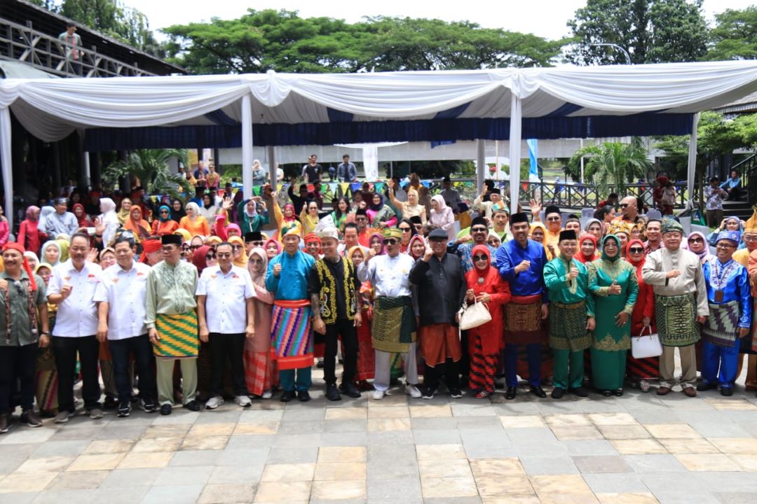 Mengenakan busana khas Melayu, Telok Belanga, Gubernur Norsan mengungkapkan rasa syukurnya atas terselenggaranya acara yang menjadi wadah persaudaraan dan pelestarian budaya daerah ini.