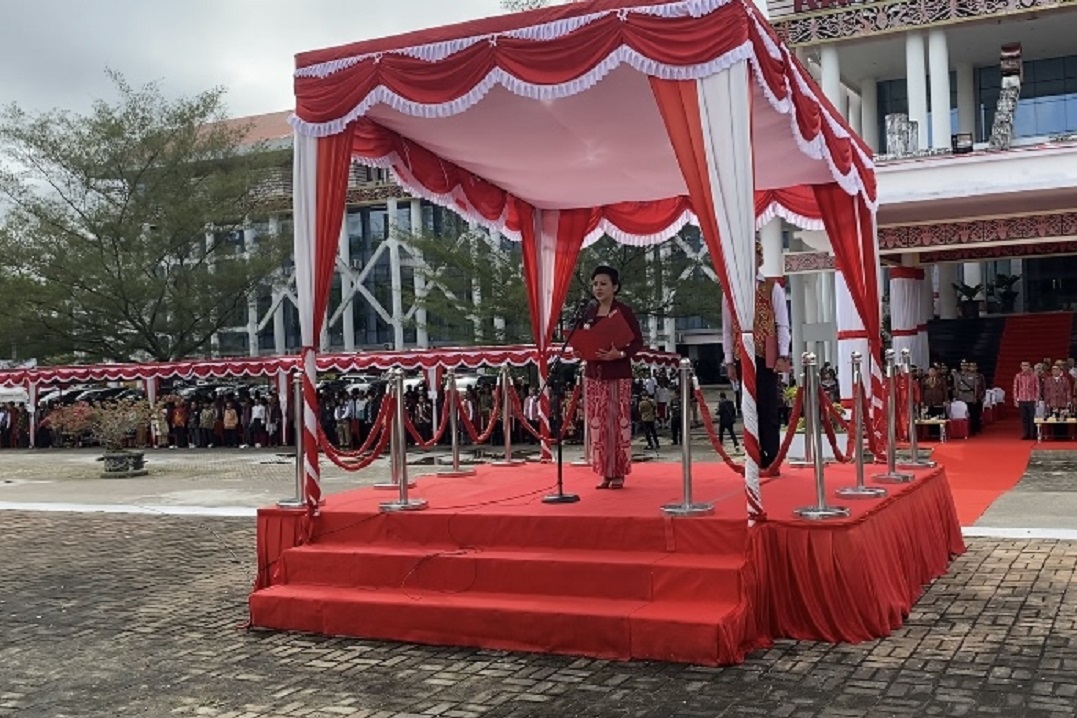 Upacara ini dipimpin langsung oleh Bupati Landak, Karolin Margret Natasa, sebagai inspektur. Nuansa persatuan dalam keberagaman sangat kental terasa, di mana para hadirin dan undangan mengenakan pakaian adat dari berbagai suku dan budaya yang ada di Landak.