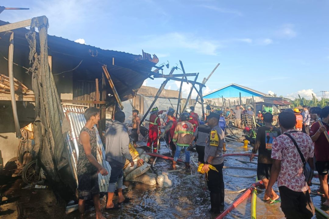 Api melahap habis bangunan semi permanen berukuran sekitar 35 x 30 meter tersebut. Seluruh isi toko dan material bangunan di dalamnya dilaporkan hangus total.