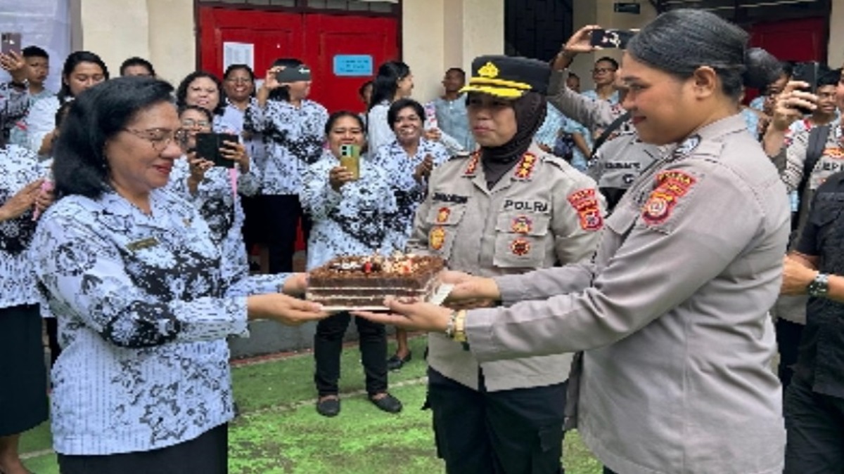 KalbarOke.com – Dalam rangka memperingati Hari Ulang Tahun (HUT) ke-80 Guru Nasional tahun 2025 bertema Guru Hebat, Indonesia Kuat, Polda Maluku menggelar aksi apresiasi besar-besaran berupa surprise ucapan selamat, pemberian kue ulang tahun, dan tumpeng di 177 sekolah mulai dari TK, SD, SMP, SMA/SMK hingga madrasah di seluruh wilayah hukum Polda Maluku, Selasa (25/11/2025).
