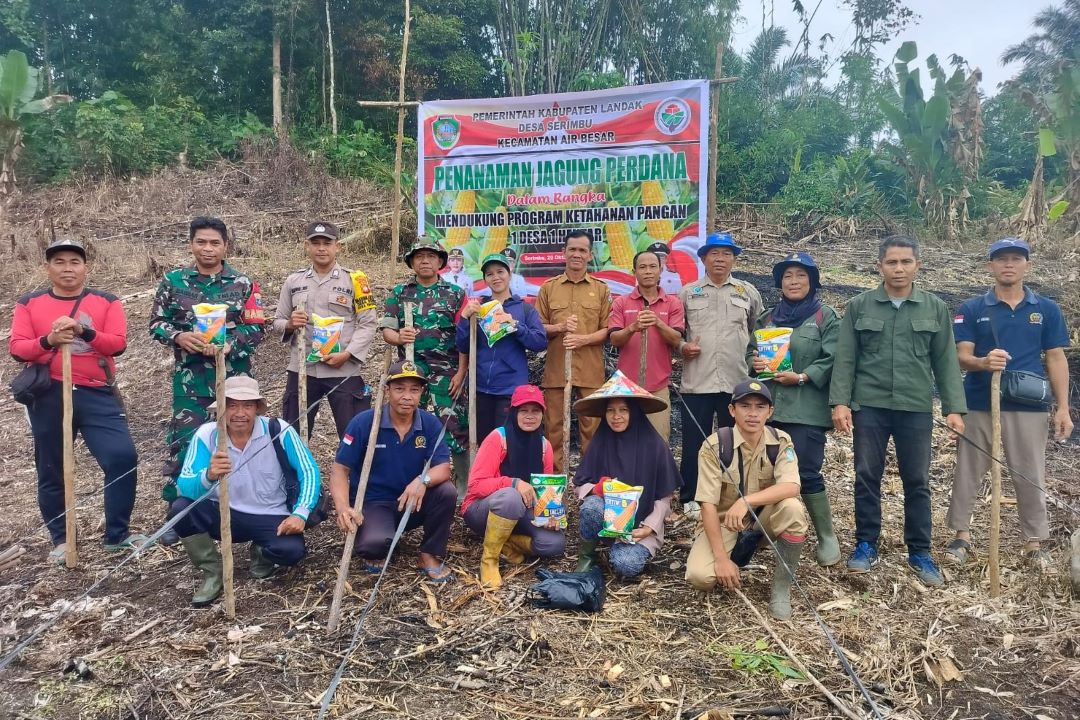 KalbarOke.Com – Komando Rayon Militer (Koramil) 07/Air Besar menunjukkan komitmennya yang kuat dalam mendukung ketahanan pangan nasional. Hal ini diwujudkan melalui partisipasi aktif dalam kegiatan penanaman jagung di lahan pertanian Dusun Saham, Desa Serimbu, Kecamatan Air Besar, Kabupaten Landak, pada Senin (20/10/2025).