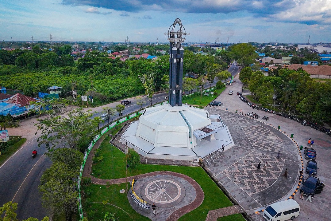 Foto Udara Tugu Khatulistiwa di Pontianak Utara. | Pemangkasan Dana Pusat Rugikan Pontianak Rp223 Miliar, Wali Kota Edi Kamtono Soroti Krisis Fiskal Daerah. (Foto: Gilang Fajar PonTV)