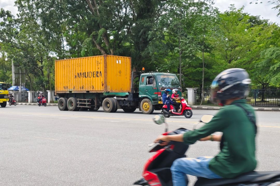 Trisna menjelaskan, “Kendaraan 40 feet ini manuvernya jauh lebih sulit, apalagi kondisi badan jalan di Pontianak relatif kecil.” Ini alasan mengapa jam operasionalnya diatur lebih ketat.