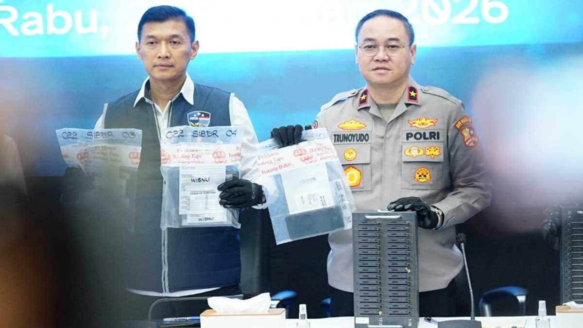 Bareskrim Polri mengungkap kasus penipuan daring bermodus phishing yang meniru situs resmi e-tilang Kejaksaan Agung. Lima tersangka ditangkap di Jawa Tengah dan Banten. Foto: Divisi Humas Polri