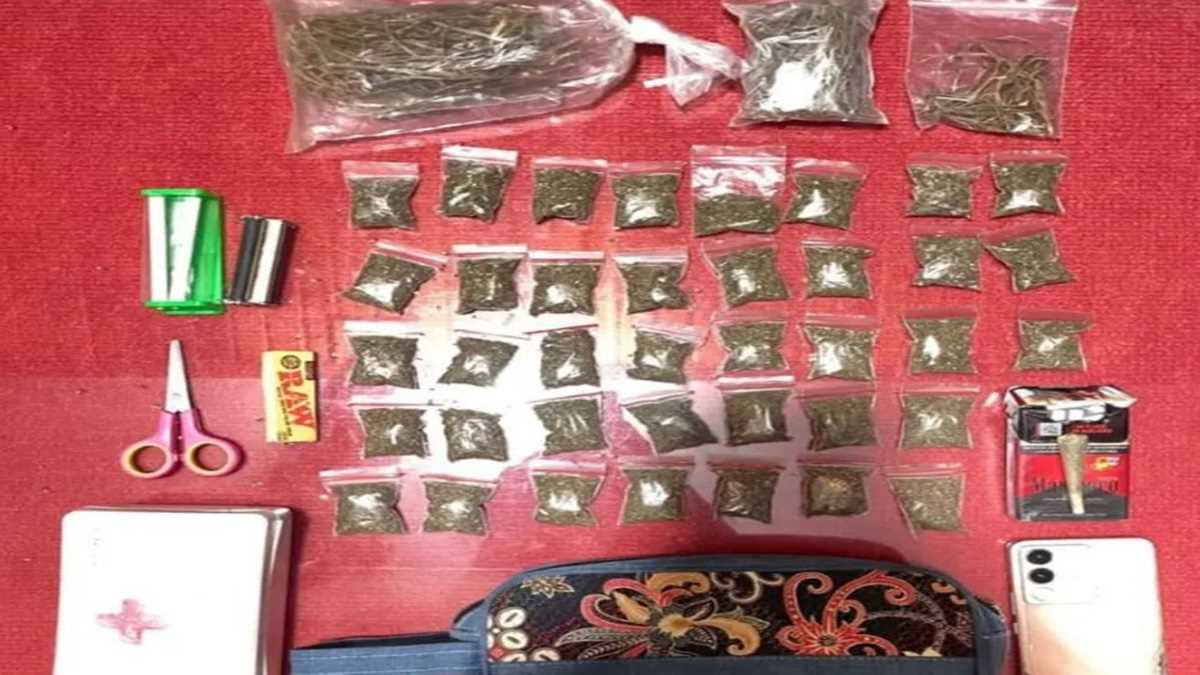 Dari lokasi tersebut, polisi menemukan toples berisi ganja kering seberat sekitar 185 gram, timbangan digital, plastik klip, kertas sigaret, serta beberapa telepon genggam yang diduga digunakan untuk transaksi.