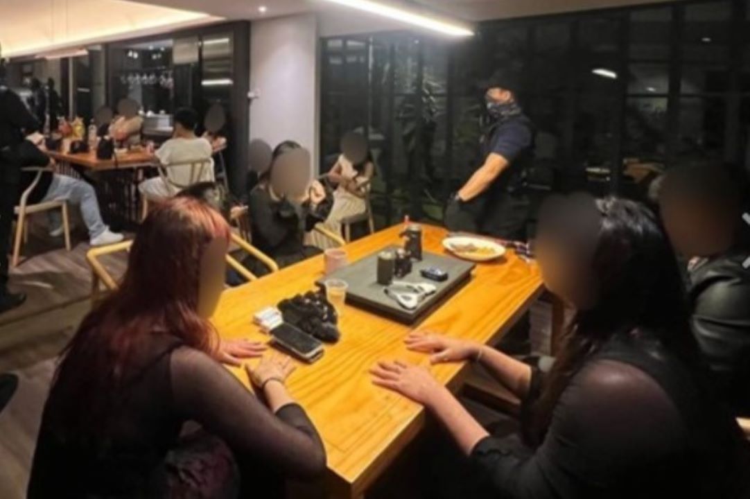 Dalam operasi tersebut, total 32 individu berusia antara 22 hingga 38 tahun ditahan dari 57 pengunjung pesta karena dicurigai terlibat dalam aktivitas penyalahgunaan barang haram.