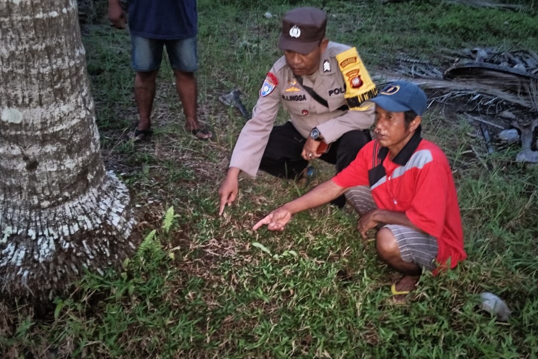 Warga tunjukkan tempat pertama kali melihat bayi. | Bayi Dibuang di Kebun Kelapa Padang Tikar, Polisi Lakukan Olah TKP dan Buru Pelaku. (Foto: Humas Polres)