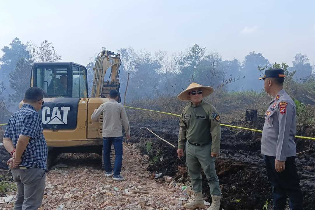Polres Kubu Raya menyegel lahan terbakar di ujung Sungai Raya Dalam dengan garis polisi pada Kamis (26/3/2026).