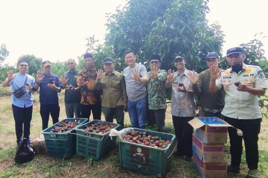 Bupati Sambas, Satono bersama Rusli Ajau saat panen manggis. | Potensi Cuan Rp500 Juta! Menghitung Manisnya Panen Manggis Perdana Rusli Ajau di Desa Segarau Tebas. (Foto: Dok. Pemkab)
