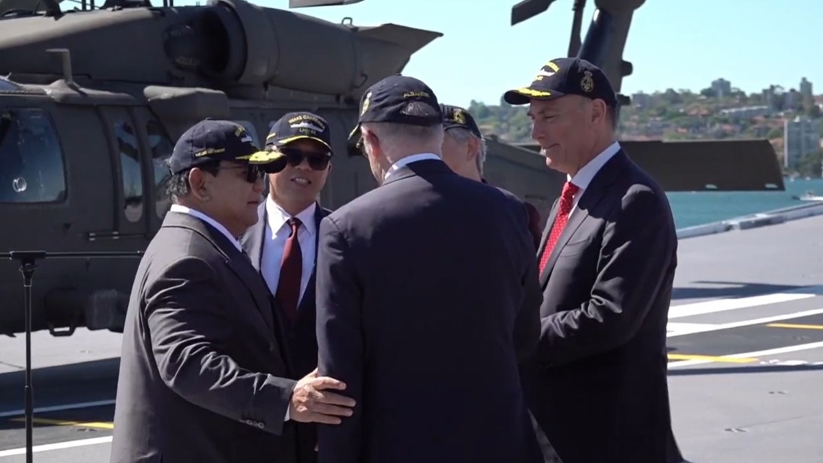 Presiden Prabowo Subianto bersama PM Australia Anthony Albanese meninjau kapal induk HMAS Canberra dalam agenda kunjungan kenegaraan. Foto: tangkapan layar YouTube PonTV