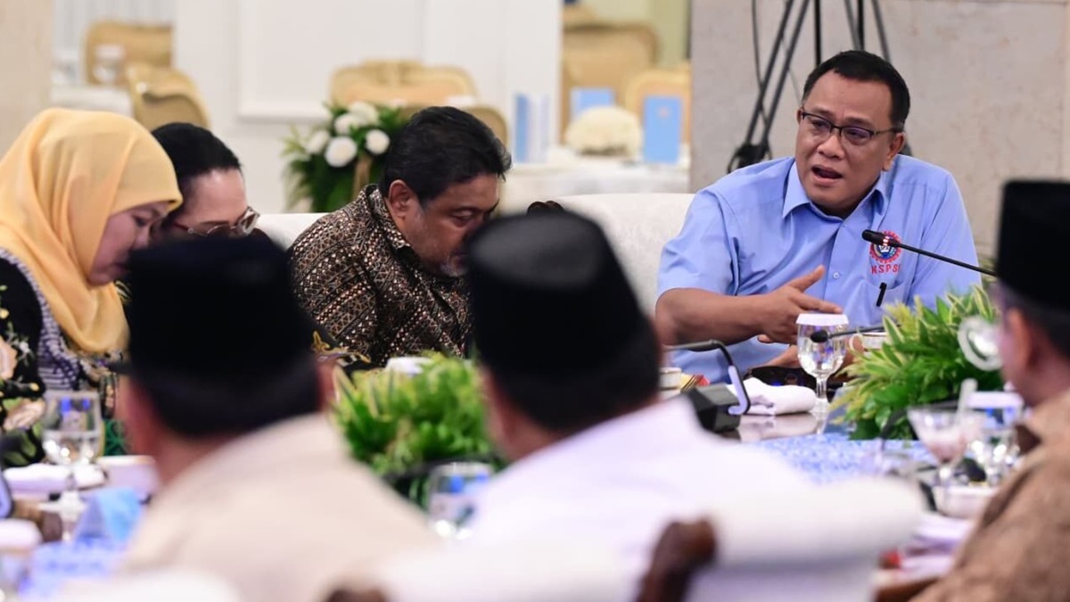 Dalam kesempatan tersebut, Presiden Konfederasi Serikat Pekerja Seluruh Indonesia (KSPSI) Andi Gani Nena Wea menegaskan dukungan penuh buruh kepada Presiden Prabowo. Ia menekankan bahwa dukungan itu dibarengi sikap tegas untuk tetap menjaga demokrasi melalui demonstrasi damai serta menolak aksi anarkis.