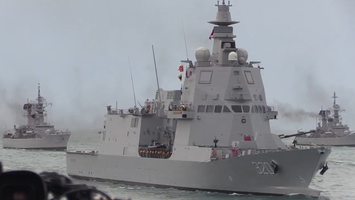 Dalam atraksi militer yang megah ini, sebanyak 51 unsur kapal perang dikerahkan oleh TNI AL. Parade laut tersebut dipimpin oleh KRI Brawijaya 320, kapal terbesar di Asia Tenggara yang baru saja diakuisisi Indonesia. Kehadiran kapal raksasa ini menjadi simbol peningkatan kekuatan maritim nasional di era modern.