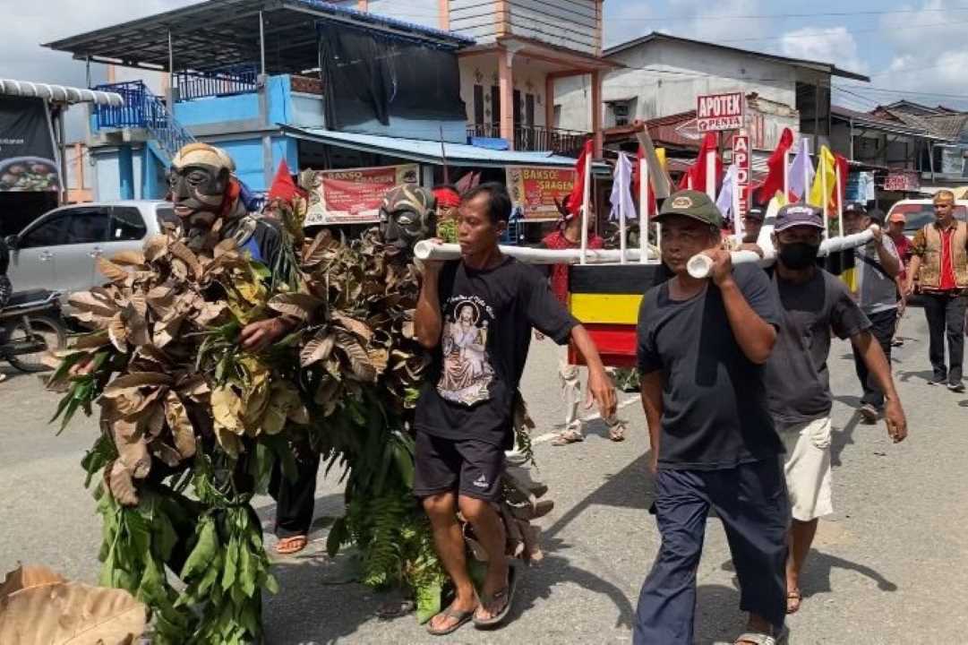 Suasana arak-arakan kian semarak dengan alunan musik gamelan Dayak, gong, serta penampilan penari topeng dengan kostum dedaunan yang unik. Setibanya di lokasi keramat, prosesi penyambutan dipimpin oleh Panyangahat atau pemimpin spiritual adat melalui ritual penyemburan beras kuning dan mengelilingi area panyugu sebanyak tiga kali.