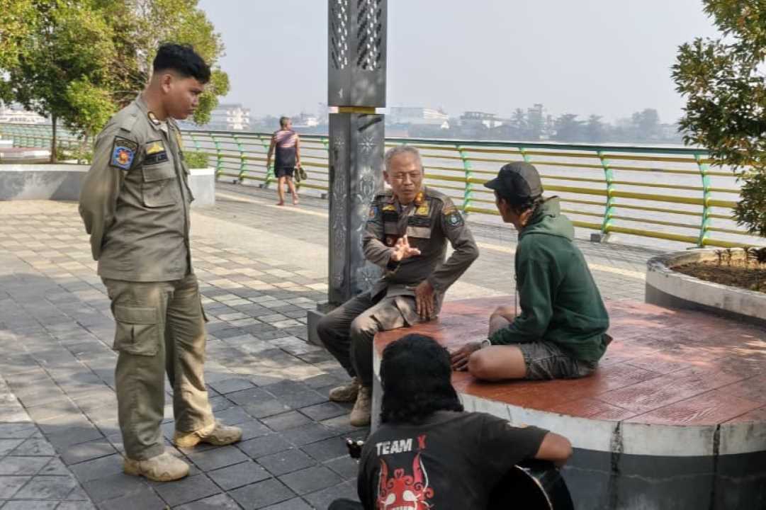 Satpol PP Tegur Gepeng Waterfront Pontianak dan Ingatkan Potensi Copet ke Pengunjung