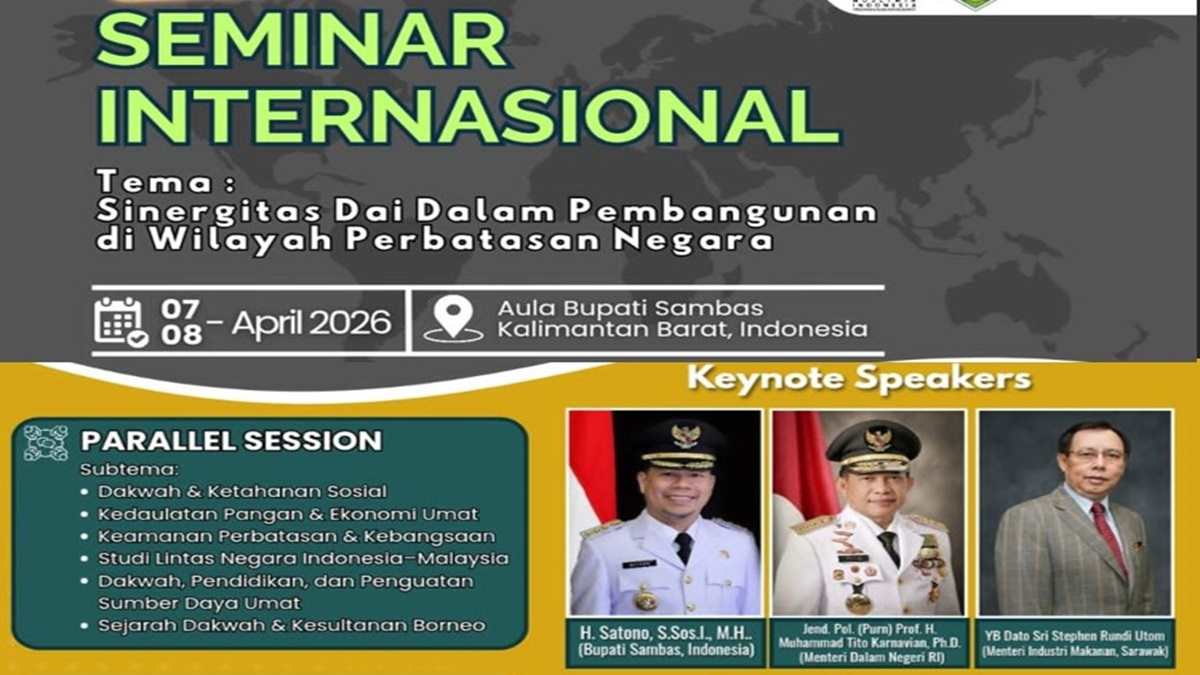 Kegiatan yang mengusung tema “Sinergitas Dai dalam Pembangunan di Wilayah Perbatasan Negara” itu akan digelar di Aula Kantor Bupati Sambas. Sejumlah tokoh nasional dan internasional dijadwalkan hadir sebagai pembicara utama, termasuk Muhammad Tito Karnavian dan Bupati Sambas Satono.