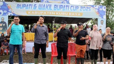 KalbarOke.Com — Bupati Kubu Raya, Sujiwo, secara resmi melakukan penancapan tiang pertama pembangunan tribun Lapangan…