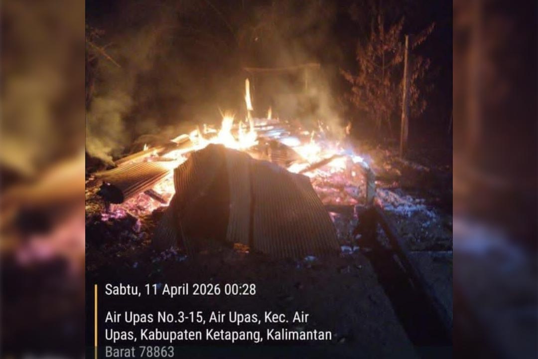 KalbarOke.Com — Aksi teror di Kecamatan Air Upas, Kabupaten Ketapang, bukannya mereda justru semakin berani. Pada Sabtu malam, 11 April 2026, pelaku misterius membakar sebuah pondok yang terletak tepat di jantung kecamatan.