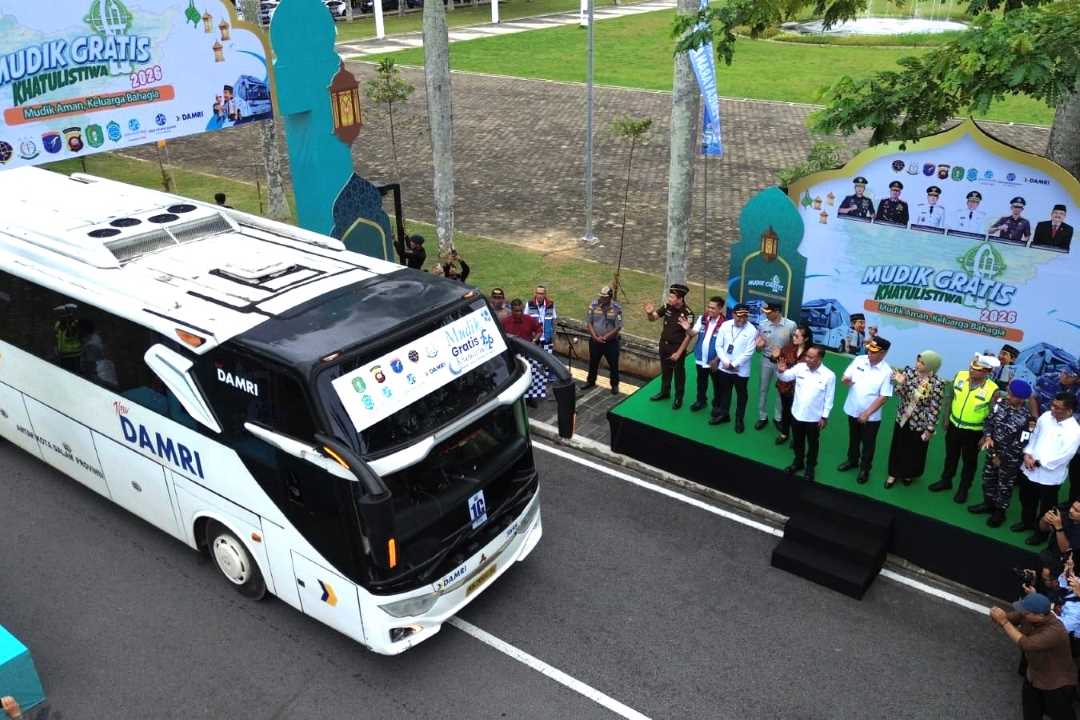 *Pemudik diberangkatkan menggunakan bus Damri menuju 12 kabupaten/kota di Kalimantan Barat dengan pengawalan kepolisian.