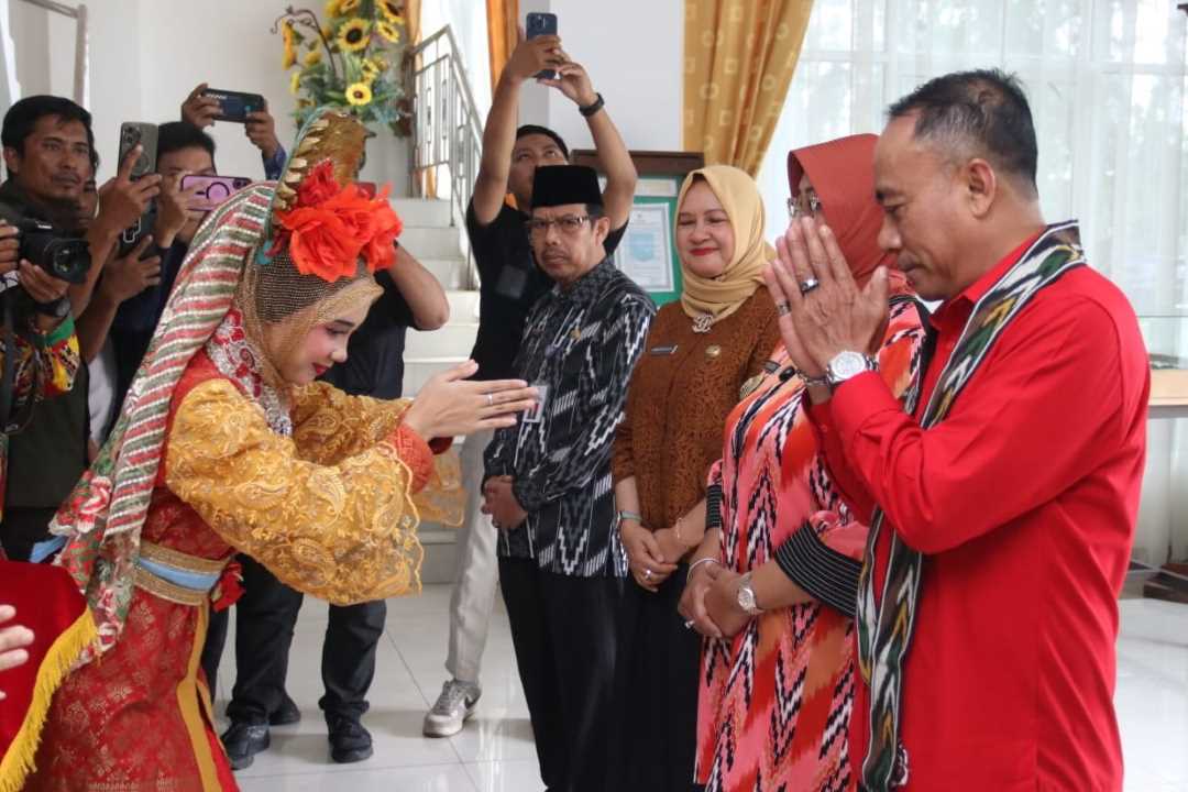 Wakil Gubernur Kalbar Krisantus Kurniawan meminta percepatan operasional Pelabuhan Kijing saat menghadiri Musrenbang RKPD Mempawah. (Foto: Krisantus disambut dengan tarian./Adp)