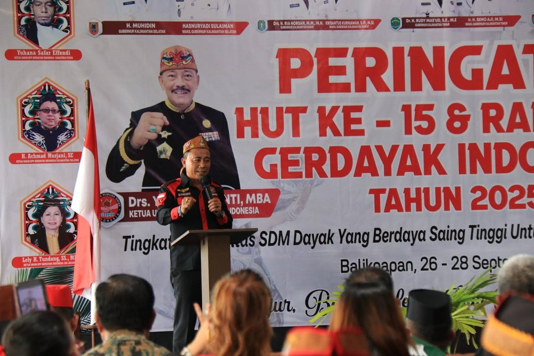 KalbarOke.Com – Wakil Gubernur Kalimantan Barat (Kalbar), Krisantus Kurniawan, menghadiri perayaan Ulang Tahun ke-15 Gerakan Pemuda Dayak Indonesia (Gerdayak) sekaligus Rapat Pimpinan Nasional (Rapimnas) Gerdayak Tahun 2025. Acara konsolidasi ini digelar di Bukit Damai Indah, Balikpapan, pada Sabtu (27/09/2025).