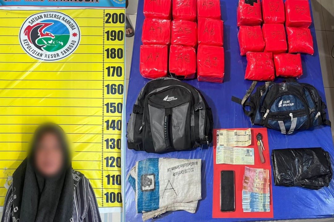 Wanita Asal Kubu Raya Bawa Sabu 18,5 Kg Ditangkap di Beduai Sanggau. (Foto: Humas Polres)
